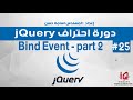 مقطع فيديو من دورة احتراف jQuery في كورسات سنتعلم في هذا الدرس كيفية اضافة حدث او مجموعة احداث الى احد العناصر داخل بالصفحة وباستخدام الجي كويري